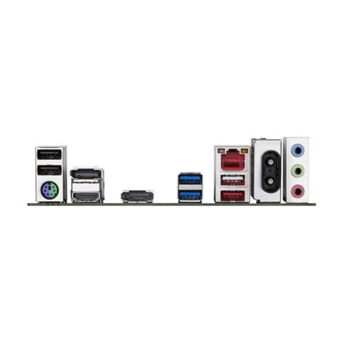 1 x HDMI port (Note) 2 x DisplayPorts (Note) 1 x USB 3.2 Gen 2 Type-A port (red) 2 x USB 3.2 Gen 1 ports 3 x USB 2.0/1.1 ports 2 x antenna connectors (2T2R) 1 x RJ-45 port 3 x audio jacks (Note) Actual support may vary by CPU. |